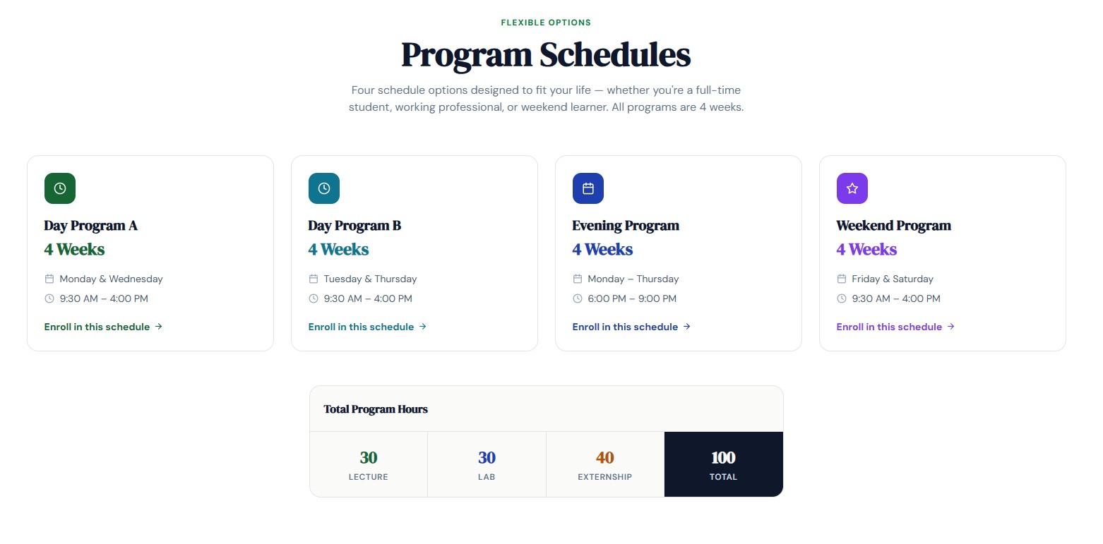 No prior healthcare experience is required. Our programs are designed for beginners and career changers. We teach all foundational skills you need to succeed.