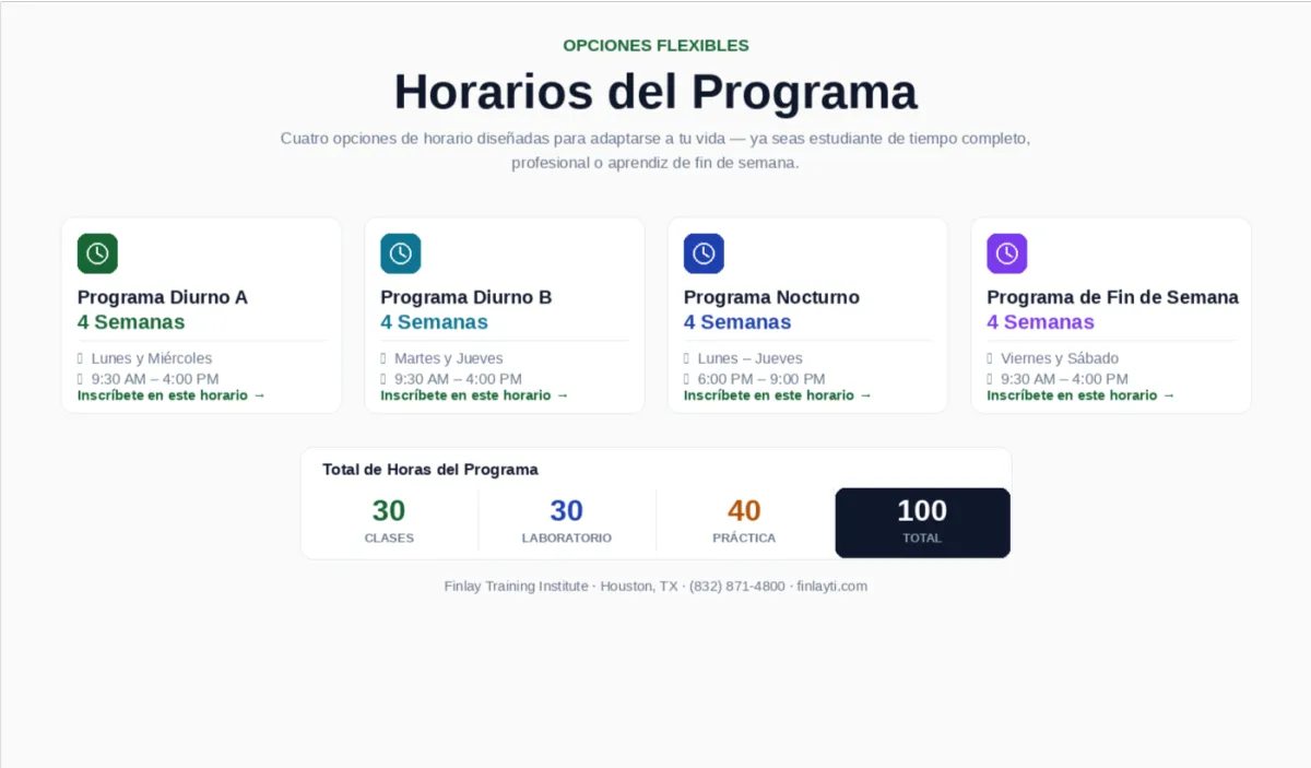 Sí. Ofrecemos horarios flexibles, incluyendo opciones en la mañana, tarde, noche y fines de semana.